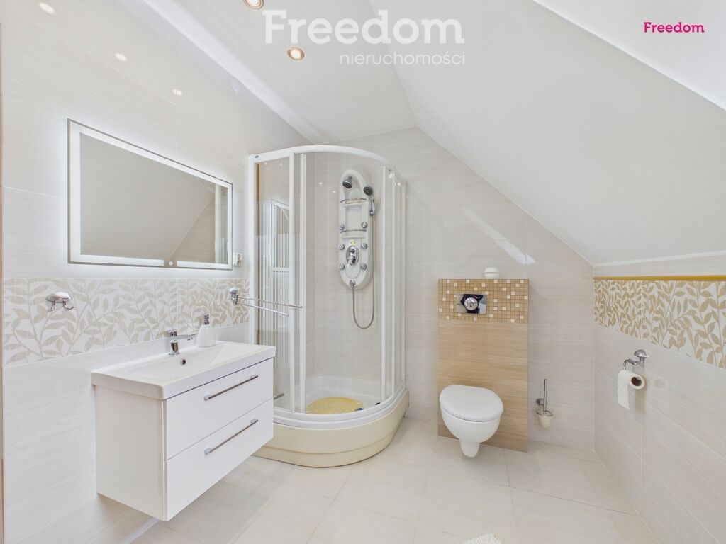 Pół piętro to dodatkowe dwa pokoje, garderoba oraz duża łazienka